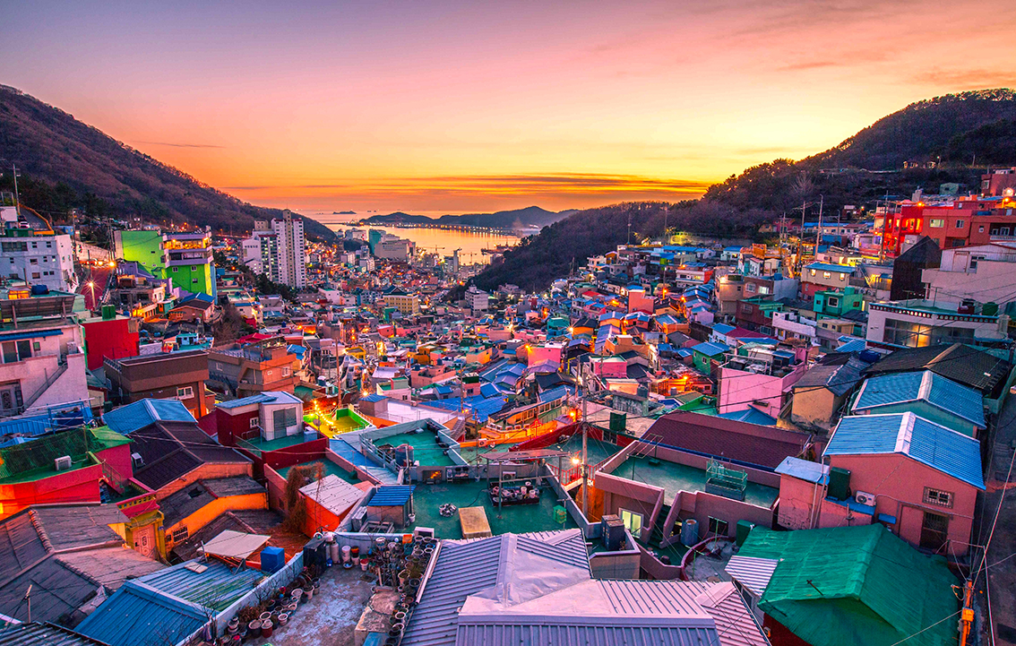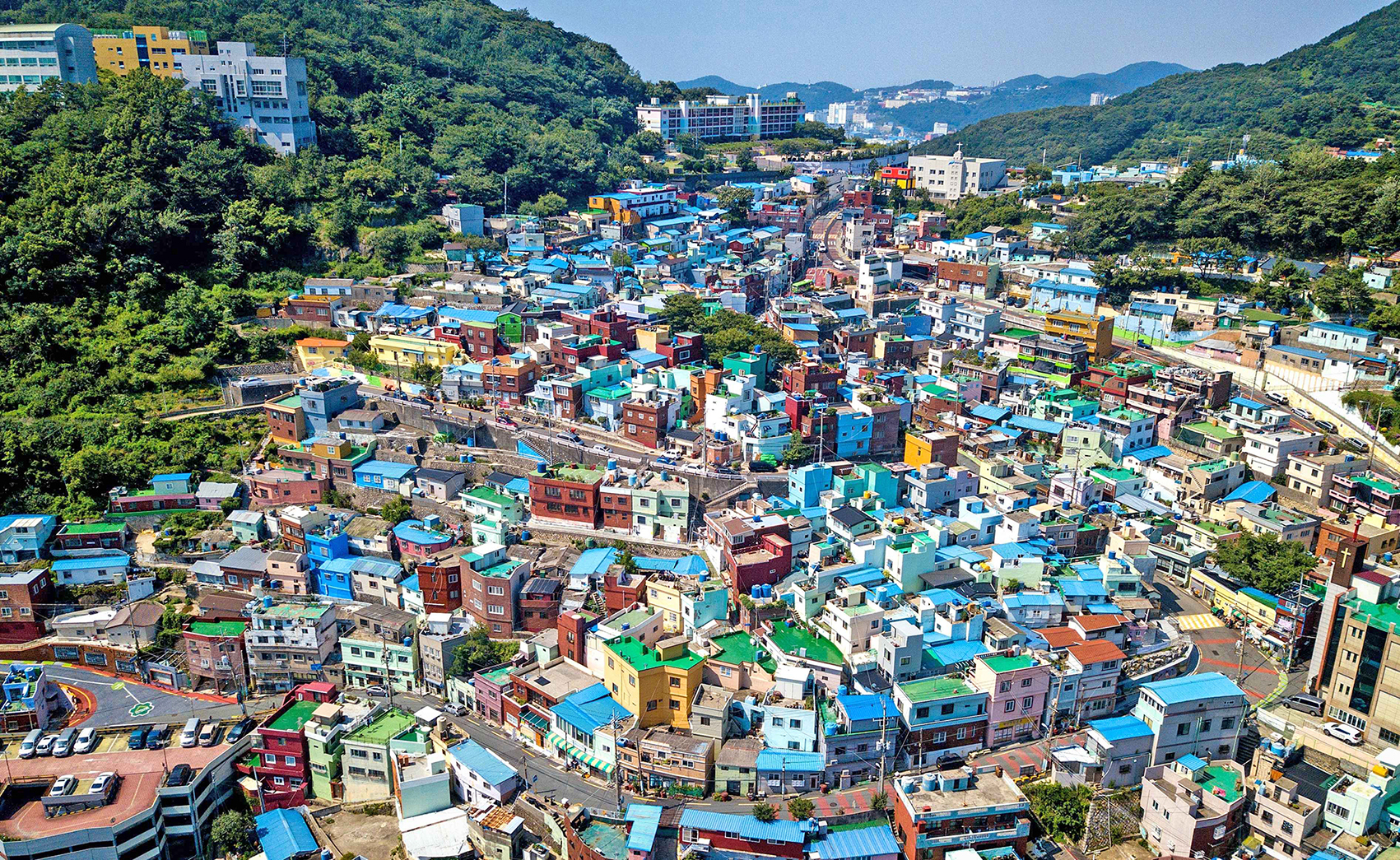 감천문화마을은 6·25전쟁 당시 피란민들이 판자집을 짓고 정착하면서 생긴 마을이다. 산자락을 따라 계단식으로 들어선 파스텔톤의 집들과 미로 같은 골목길이 독특한 경관을 자랑한다. 낙후된 달동네였지만, 피난민의 고단한 삶의 흔적 위에 알록달록한 벽화와 설치 작품들이 마을 전체를 갤러리처럼 만들면서 부산의 대표적인 관광명소로 거듭났다.