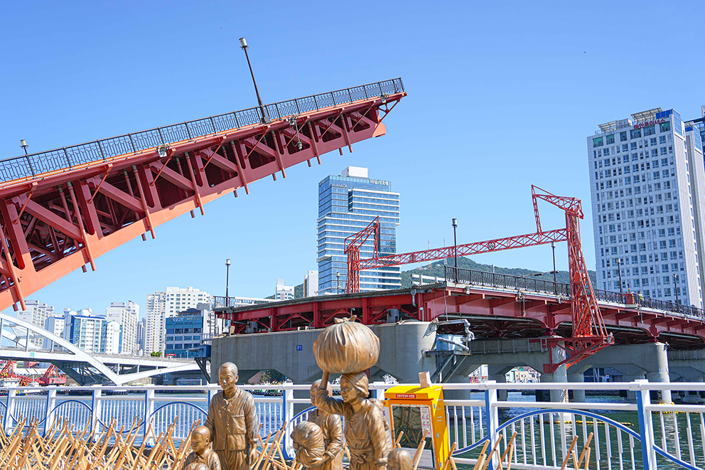 1934년에 개통된 영도대교는 대한민국 최초의 연륙교이자 다리 상판을 들어올리는 도개교였다. 부산 중구와 영도를 잇는 영도대교는 6·25전쟁 당시 피란민과 군수 물자의 이동을 책임지는 핵심 교통로였다. 특히 헤어진 가족과의 재회를 기약하던 만남의 장소로, 수많은 피란민이 가족을 기다리며 희망과 슬픔이 교차하는 시간을 보냈던 역사의 현장이다.