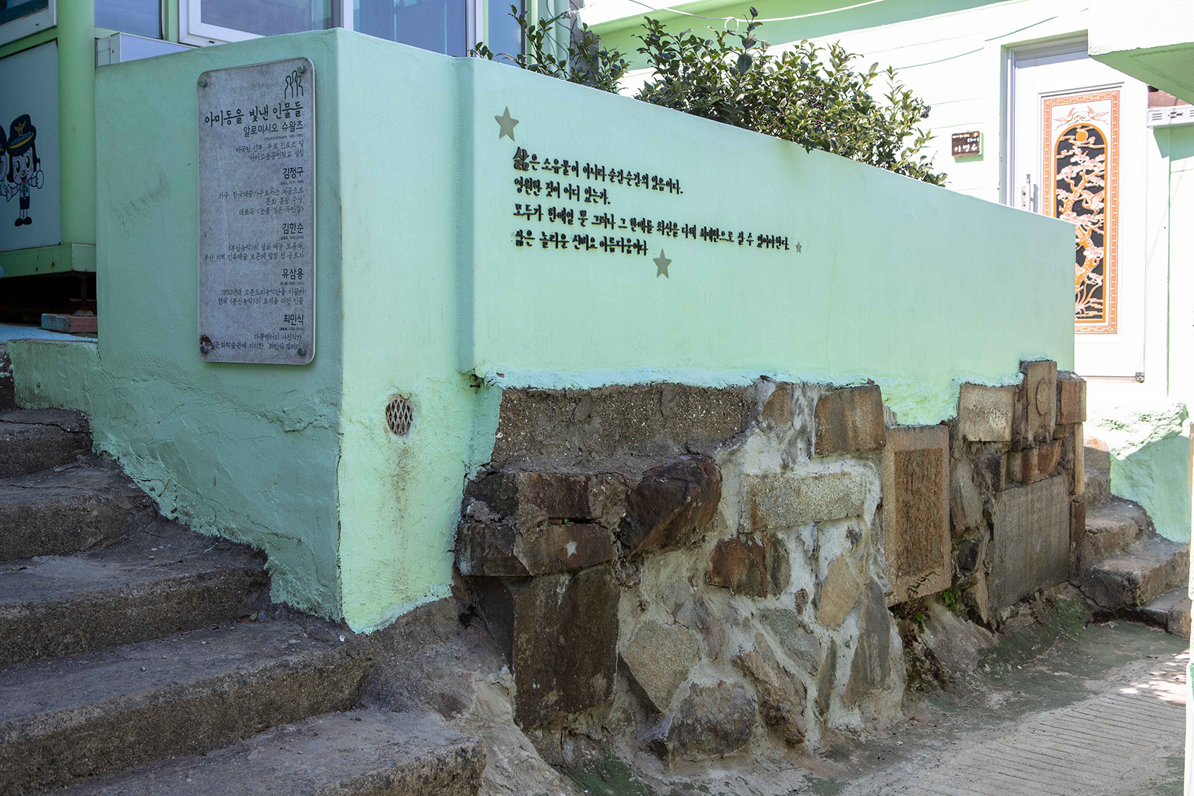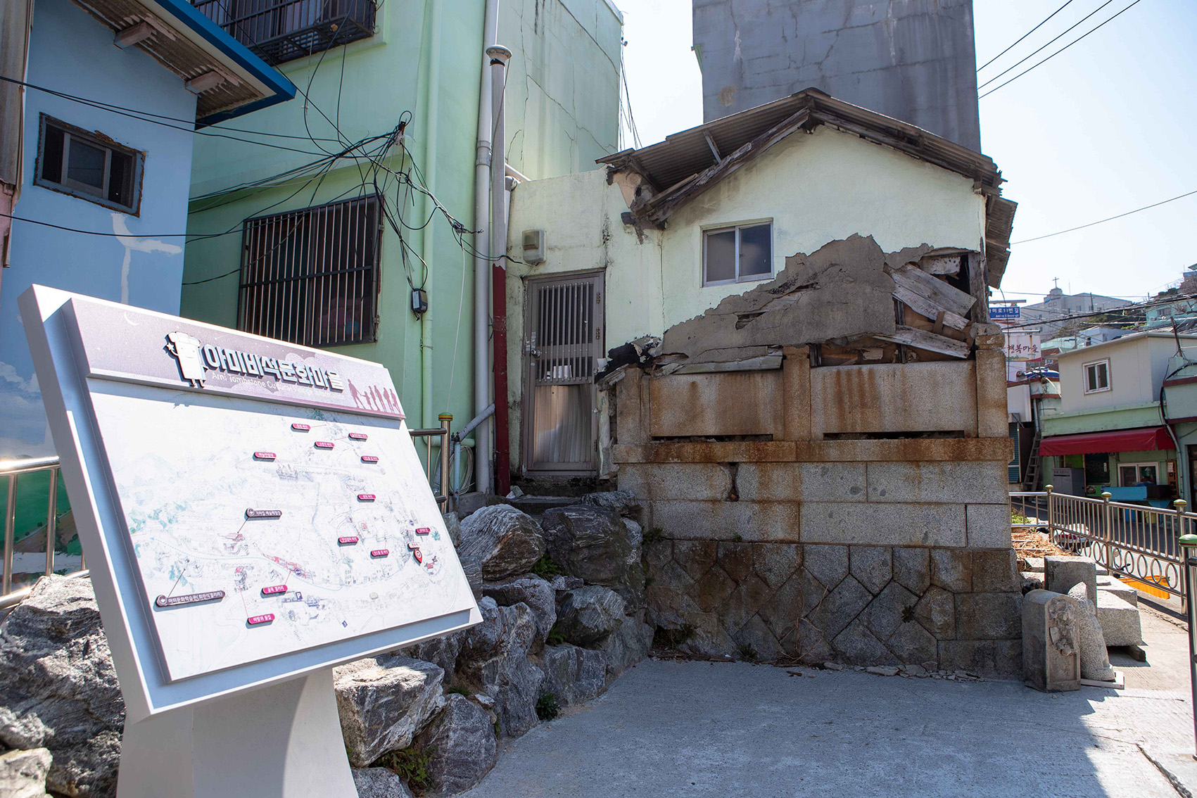 천마산 중턱에 자리한 아미동 비석마을은 죽음 위에 삶이 이어진 공간이다. 일제강점기에 조성된 일본인 공동묘지 터에 피란민들이 터를 잡으면서, 묘비를 활용해 집을 지은 데서 마을의 이름이 유래되었다. 현재는 문화마을로 조성되어 원형이 보존된 8채의 피란주택을 생활사 박물관으로 활용, 여전히 전쟁의 상처와 생존의 흔적이 고스란히 남아 있는 곳이다.