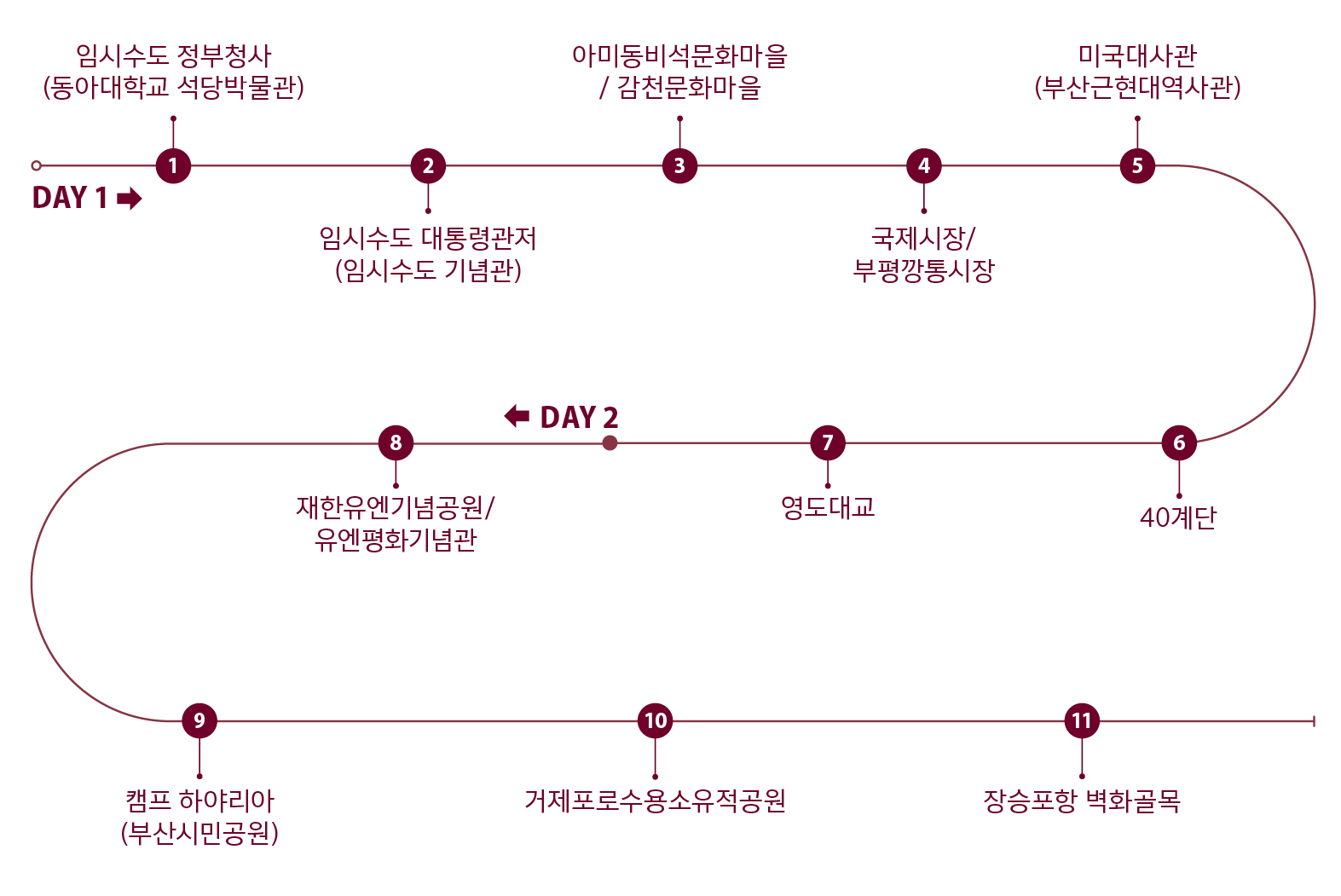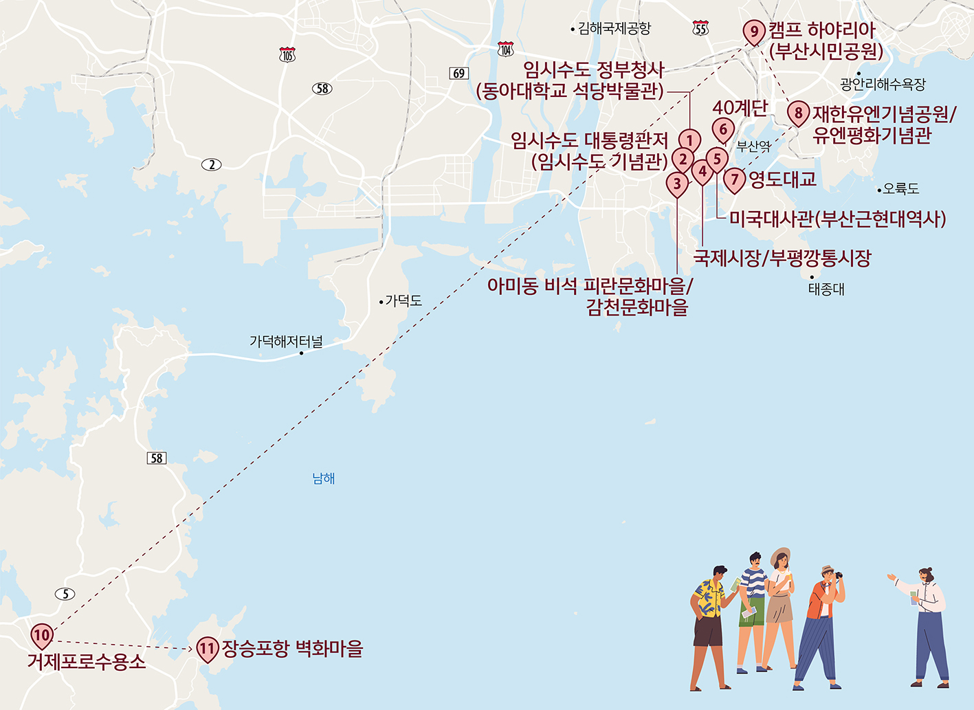 부산 역사·안보여행은 전쟁의 상흔과 회복의 시간이 깃든 주요 공간들을 잇는 여정이다. 피난도시 부산의 역사와 전쟁 속에서도 삶을 일구며 희망을 찾은 사람들의 발자취를 따라 걸어본다.