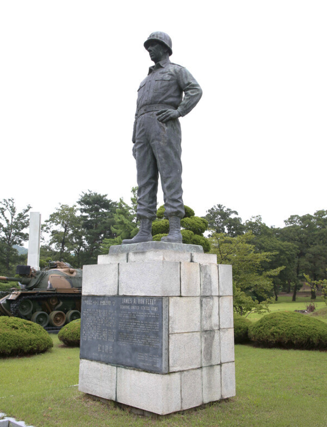 밴 플리트 장군은 1951년 4월 미8군과 유엔군 총사령관으로 6·25전쟁에 참전했다. 중국 공산군과 북한군에 맞서 탁월한 지휘력을 발휘했고, 전선 안정과 평화 회복에 크게 기여했다. 특히 육군사관학교 개교에 기여하고 한국군의 전력 강화에 많은 노력을 기울여 '한국 육군의 아버지'로 불린다. 그의 공헌을 기리며 1960년 3월 31일 육군사관학교 교정에 동상이 건립되었다.