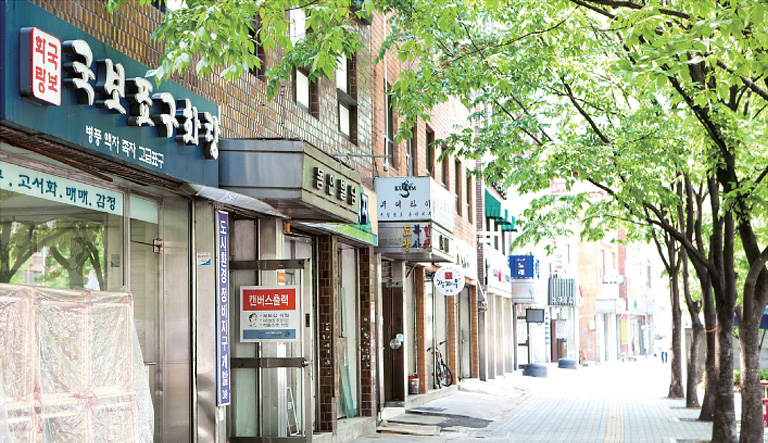1950년대 전후 어려운 시기에 일부 화가들은 미군 부대 근처에 이젤을 세우고, 병사들이 가져온 가족이나 연인의 사진을 보고 초상화를 그려주었다. 이런 활동이 용산 기지 주변에 집중되며 '화랑거리'로 알려졌고, 미군 대상의 맞춤형 초상화 시장으로 자리 잡았다. 현재 삼각지역 일대에는 당시 초상화 작업장의 흔적과 미술상, 포스터샵, 수공예점 등이 남아 있다.