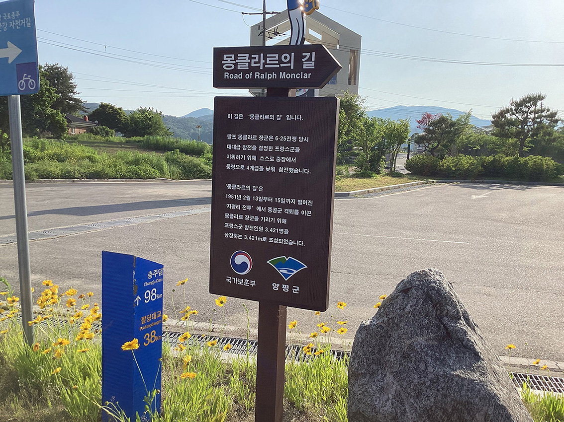 프랑스의 전쟁 영웅 라울 모네 몽클라르 장군은 지평리 전투에서 중공군에게 첫 승리를 쟁취하며 혁혁한 공을 세웠다. 그의 헌신을 기리고자 ‘몽클라르의 길'을 지정했다. 6·25전쟁에 참전한 프랑스 군 3421명 숫자를 따라 3,421미터 구간에 조성되었으며, 몽클라르 장군 사령부 기념비, 프랑스군 참전 기념비 등 지평면 일대의 프랑스군 참전 유적지들을 따라 자전거로 돌아보는 코스이다.