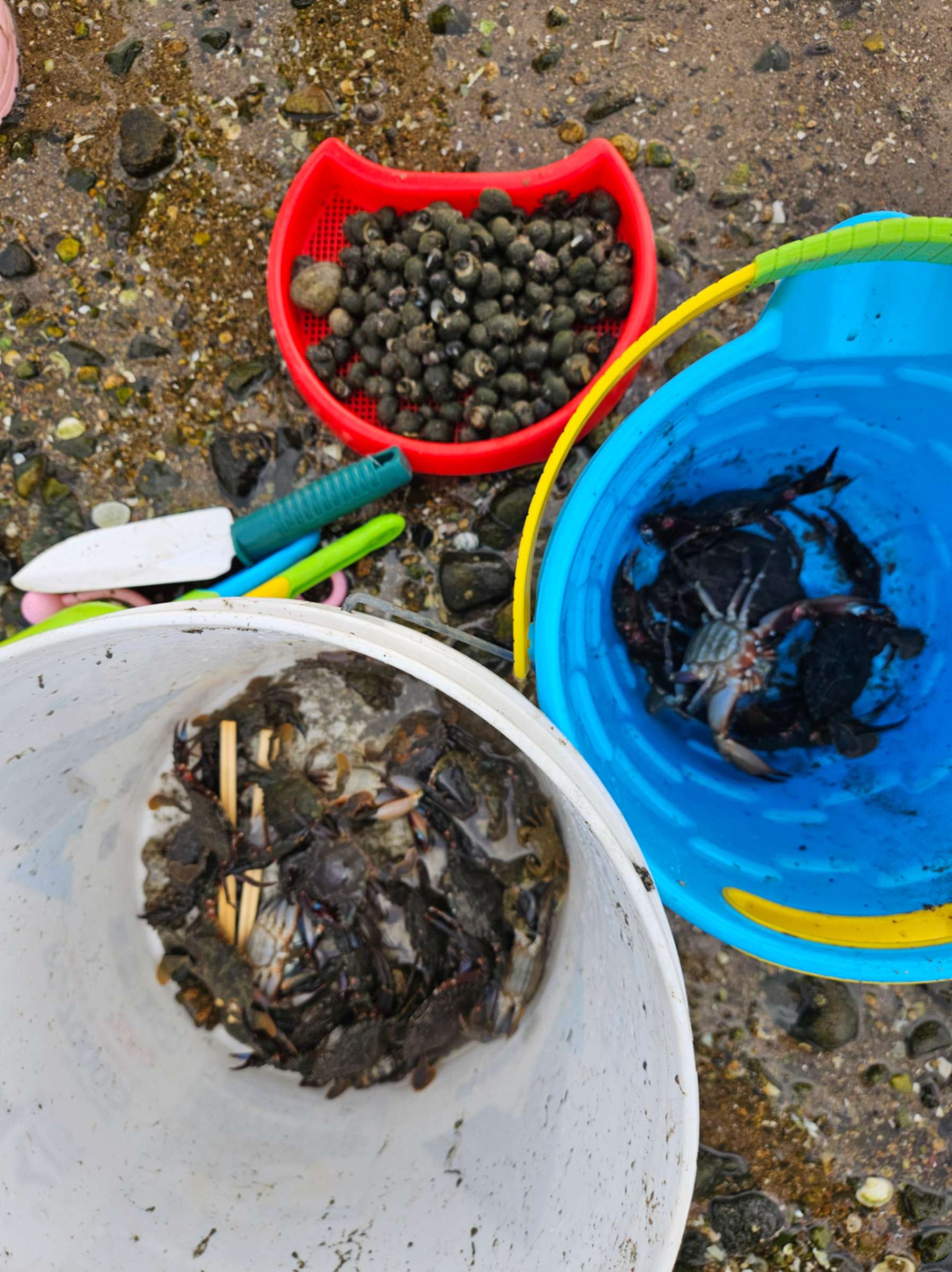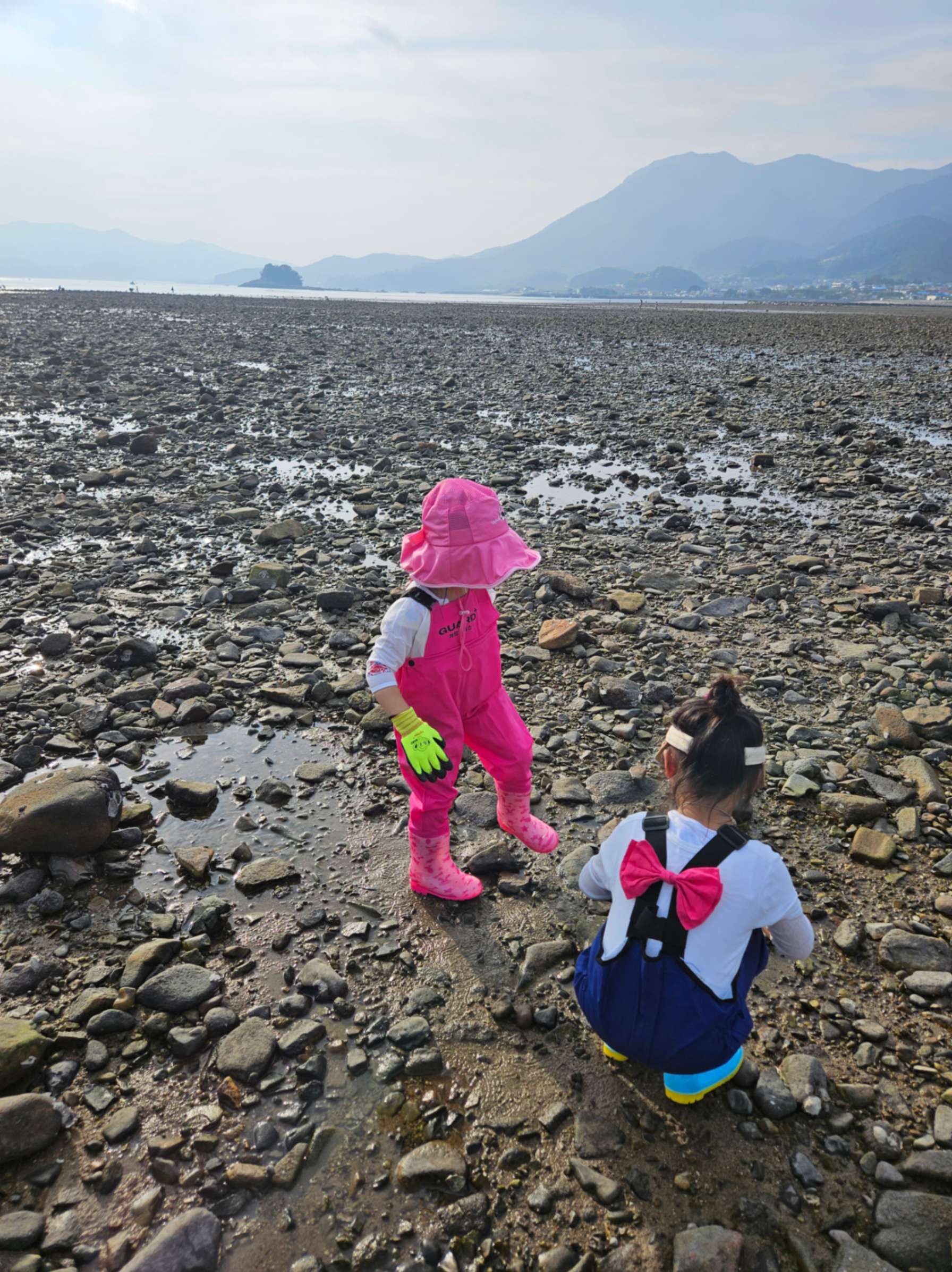 남해 갯벌체험 펜션이용으로 무료로 할수있었던 갯벌체험 열씸히 바위뒤져가며 고동을캤네요^^